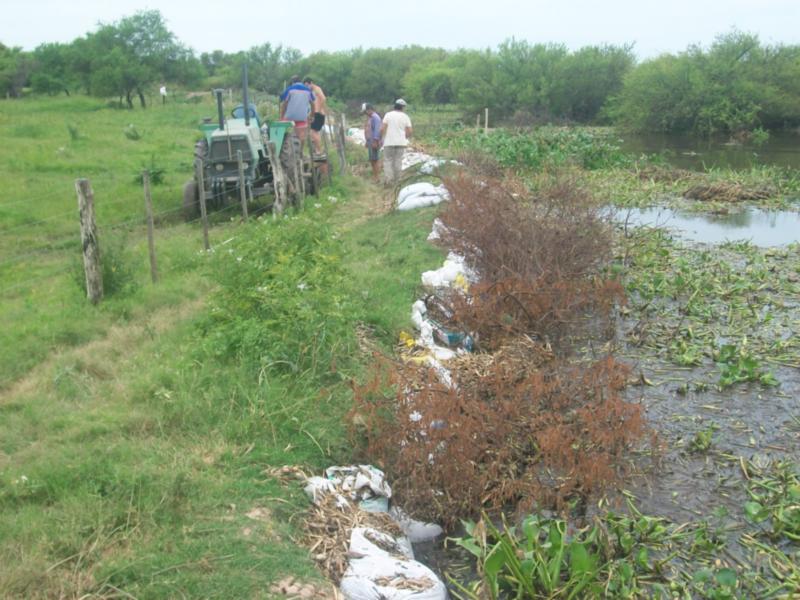Un grupo de vecinos de la comunidad de El Laurel, departamento Garay, está reforzando la defensa que los protege de la crecida del río San Javier.