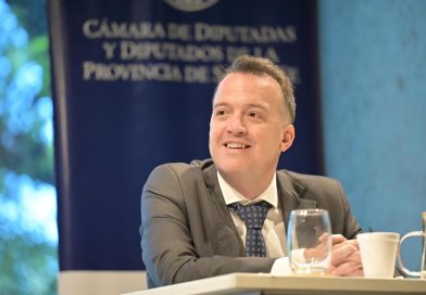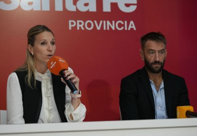 La presidenta de la Cámara de Diputadas y Diputados de Santa Fe, Clara García y el diputado Mariano Cuvertino encabezaron
