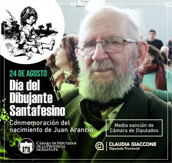 También obtuvo media sanción, otro proyecto de la misma legisladora santafesina, que propuso que el 24 de agosto sea declarado el día del dibujante Santafesino en conmemoración del día del nacimiento de Juan Arancio.