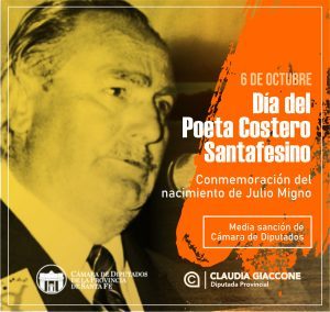 La cámara de diputados de la provincia de Santa Fe aprobó el proyecto presentado por la diputada Claudia Giaccone, por el cual se instituye el día 6 de octubre como el “Día del Poeta Costero Santafesino” en todo el territorio provincial en conmemoración al nacimiento de Julio Migno.