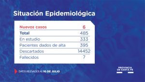 El Ministerio de Salud de Santa Fe, a través de la Dirección Provincial de Epidemiología, informa a la población que en el día de la fecha se han confirmado 6 casos nuevos de COVID-19, en el territorio provincial.
