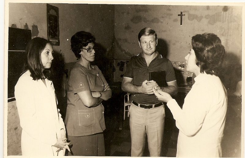 Año 1977 – Con la secretaria de Cultura, Gladis Piedrabuena, visitan a la directora de la Escuela de Educación Especial N° 2038, María Eva Gutiérrez,, en el edificio de calle General López.