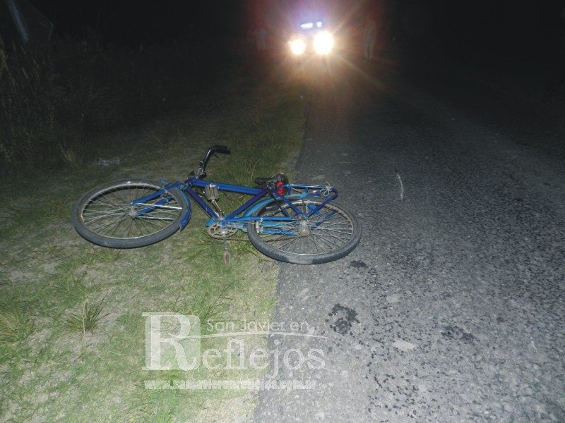 Un hombre de 71 años de edad identificado como Mario Canevari, resultó esta noche con lesiones leves, al ser colisionado por una moto cuando circulaba en bicicleta por la ruta provincial Nº 1, jurisdicción de Colonia California, al norte de la ciudad de San Javier.
