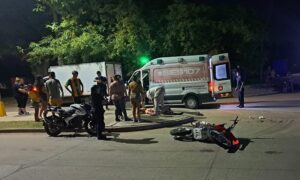 San Javier. Un accidente de tránsito ocurrió en la noche del jueves 14 de noviembre, cuando una motocicleta Honda Tornado de 250 cc, conducida por un joven acompañado de una joven, ambos menores de edad, impactó contra un camión Iveco Daily en la intersección de las calles Av. Poeta Julio Migno y Lavalle, en San Javier.