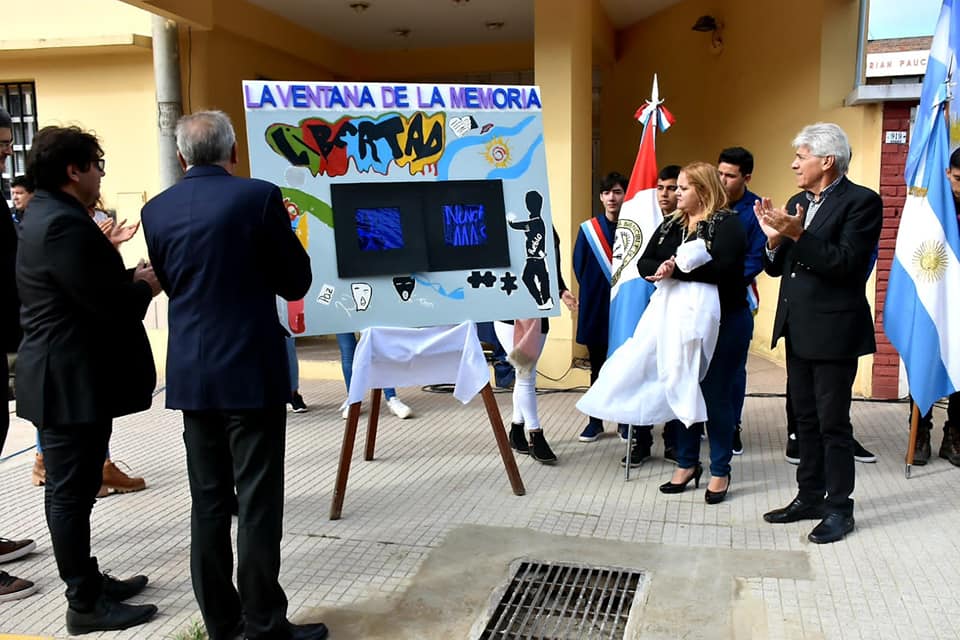 Como recordatorio de este día se descubrió la «ventana de la memoria», realizada por alumnos de la entidad educativa.
