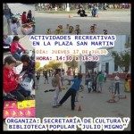La Secretaria de Cultura, Educación y Deporte junto a la Biblioteca Popular «Julio Migno» invitan a participar de las actividades recreativas en la plaza San Martín de nuestra ciudad este jueves 17 del corriente mes desde las 14:30 a 16:30 hs.