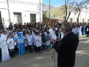 El intendente Mario Migno encabezo este jueves el acto en conmemoración del Día de la Bandera, y les tomó la promesa de lealtad a la insignia nacional a niños y niñas de 4° grado del distrito San Javier.