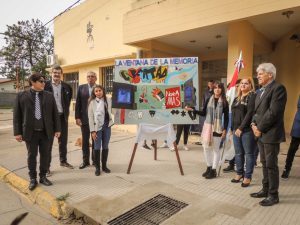 El descubrimiento del mismo fue realizado por el Intendente Mario Migno, el senador José Baucero, el subsecretario de Cultura, Educación y Deportes, Cesar Racca, el director de la escuela Enzo Morel, la vicedirectora, Gisela Coria y las ex alumnas de la institución.