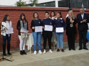 También, el Intendente Mario Migno, junto a la secretaria de Cultura, Educación y Deportes, Alicia Ocampo, entregaron los diplomas de reconocimiento a aquellos alumno/as que hicieron posible la realización del Mural.