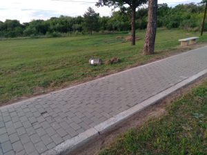 Durante la madrugada del domingo, los cestos de residuos ubicados en la senda peatonal y ciclovía de nuestro pueblo fueron removidos de su posición por actos de vandalismo.
