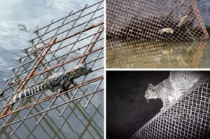 Desde entonces, cada tanque del campo tiene una. Pero en distintos formatos, según los recursos disponibles: con un pallet en lugar de malla; o con dos bidones; atadas con sogas o alambres; o de reja, a su vez combinada con tejido de alambre para que tenga dos medidas o “calibres” y sirva tanto a pequeños animales como a los grandes. “Vamos cambiando y viendo cual es la mejor”, dijo. Mientras tanto, estimó que la de malla es buena para pájaros y pequeños reptiles.