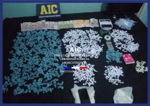 Los efectivos de AIC llevaron a cabo tarea de inteligencia que concluyeron en los procedimientos que tuvieron como resultado el secuestro de material estupefacientes como 603 envoltorio conteniendo picadura de marihuana con un pesaje total de 719.17 gramos , 869 envoltorios de cocaína con un peso de 362,31 gramos, 6 celulares, 1 tablet, 3 balanzas, 1 c.p.u, 1 notebook, 1 licuadora, 2motos de alta cilindrada, un total de 33.750 pesos en efectivo y la detención comunicada de F.E.D de 30 años, A.R.D de 32 años y F.G.G de 51 años de edad.