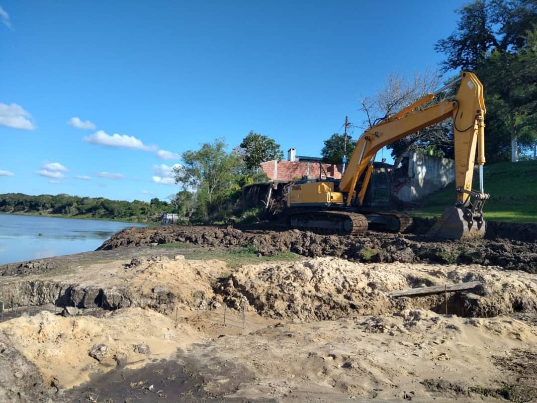 El presidente de la Comuna, Oscar Dolzani informó que esta semana se retomaron los trabajos en la obra de defensa contra inundaciones y futuro paseo costanera, dentro del camping comunal.