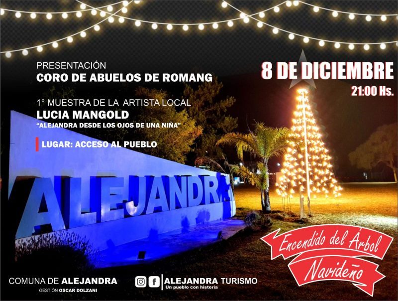 Será el jueves 8 de diciembre a las 21:00 hs. Se invita a todos los vecinos de nuestra localidad a acercarse al acceso del pueblo y ser parte del tradicional encendido del árbol, que representa la luz y la esperanza de nuestros sueños y anhelos en estas fiestas que se aproximan.