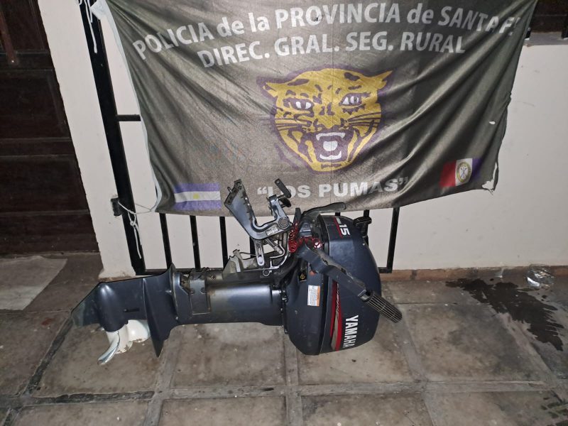 Personal de la Guardia Rural “Los Pumas”, de la localidad de Alejandra secuestro un motor de lancha. Desarrollando patrullaje preventivo, identificaron un ciudadano que se encontraba en zona de costas, a quien le secuestraron un motor de la lancha ya que no contaba con los correspondientes papeles.