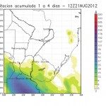 Tendencia para los siguientes cinco días (26/08/12 al 30/08/12): Se espera un patrón de precipitaciones leves en la Cuenca del Plata.