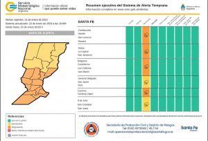 El servicio meteorológico nacional emitió esta tarde un alerta amarillo por tormenta para gran parte de la provincia de Santa Fe.