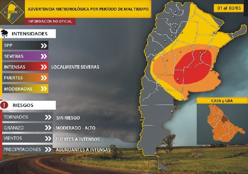 El servicio Meteorológico Nacional emitió este miércoles un alerta por tormentas fuertes para la provincia de Santa Fe, Entre Ríos, sur de Chaco, centro y sur de Corrientes, y este de Santiago del Estero.