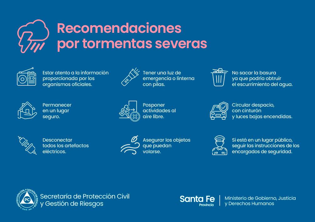 En tanto, el alerta naranja implica tormentas fuertes, las cuales podrán estar acompañadas por intensas ráfagas, fuerte actividad eléctrica, ocasional caída de granizo y fundamentalmente abundante caída de agua en cortos periodos. Se esperan valores de precipitación acumulada entre 70 y 90 mm, pudiendo ser superados de forma puntual.