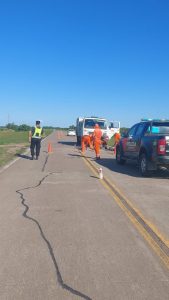 Uno de los daños se produjo a unos dos kilómetros al oeste de la localidad de La Brava, mientras que el segundo se registró antes de llegar a Gobernador Crespo. Ante esta situación, personal de la Zona IV de la Dirección Provincial de Vialidad realizó tareas de reparación provisoria para garantizar la circulación vehicular.