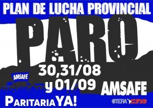 En el marco de la última resolución de Asamblea Provincial, se llevará adelante un paro de 72hs este martes 30 – miércoles 31 de agosto y 01 de septiembre.