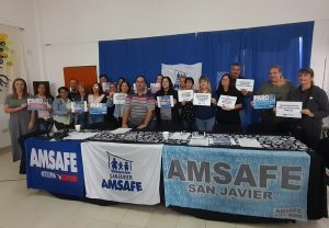 En una conferencia de prensa realizada esta mañana en el salón de usos múltiples de la entidad sindical, el Delegado departamental Mario Mendoza y la Secretaria Adjunta Segunda de AMSAFE provincial, Patricia Hernández, expusieron las motivaciones que llevaron a los docentes de Santa Fe a adherirse al paro convocado por CTERA, el cual, según indicaron, tuvo un alto acatamiento a nivel nacional.