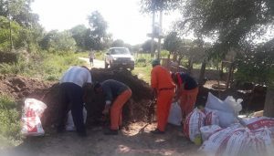 Hoy se llevaron bolsas de tierra y se preparó el terreno, quedando aproximadamente tres días más para la culminación, si las condiciones del tiempo acompañan.