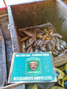 Personal de la Guardia Rural Los Pumas, secuestraron casi 130 piezas de pescado y labraron actas por infracción a la ley provincial de pesca, a tres hombres mayores de edad.