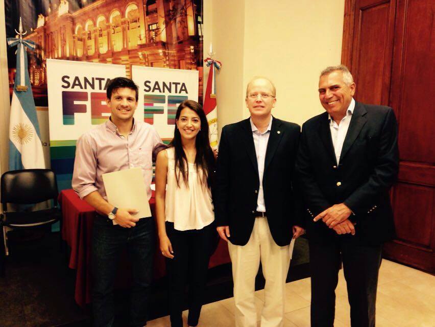 El acto fue en el Salón Auditorio de Casa de Gobierno y también asistió el Ministro de la Producción Luis Contingiani. Por parte del municipio estuvo presente el intendente Mario Migno, acompañado por el Secretario de la Producción Pablo Bode y la concejal Verónica Galarza.