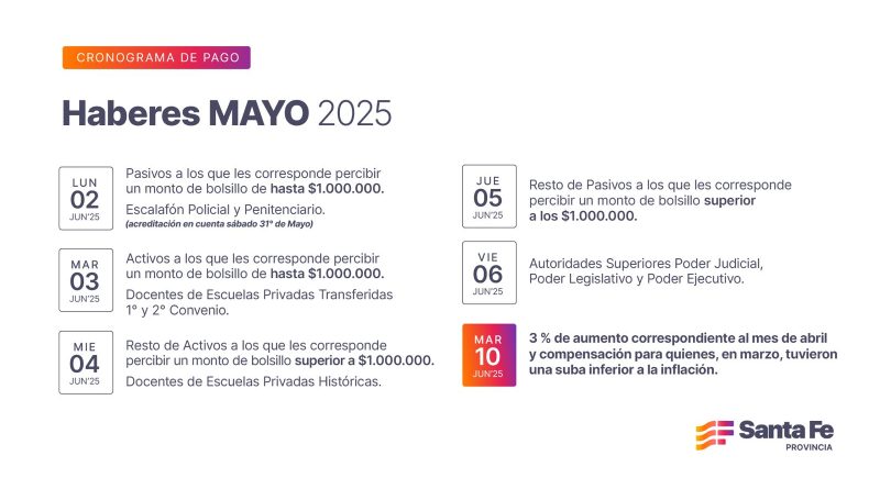 Leer másComenzará el lunes 2 de junio y se completará el viernes 6. Quienes cobren en el primer turno tendrán acreditado