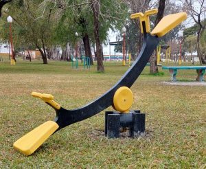 Ayer se instalaron en el parque Patoruzito del Boulevard «Pedro A. Candioti» un sube y baja giratorio para niños/as y un banco, hechos totalmente de plástico reciclado, enviado desde esta ciudad. También se colocará un cesto en otra plaza.
