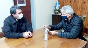 Además, se reunió con el nuevo Párroco Armando Cattaneo a quien le entregó un aporte para gastos de funcionamiento del Santuario.