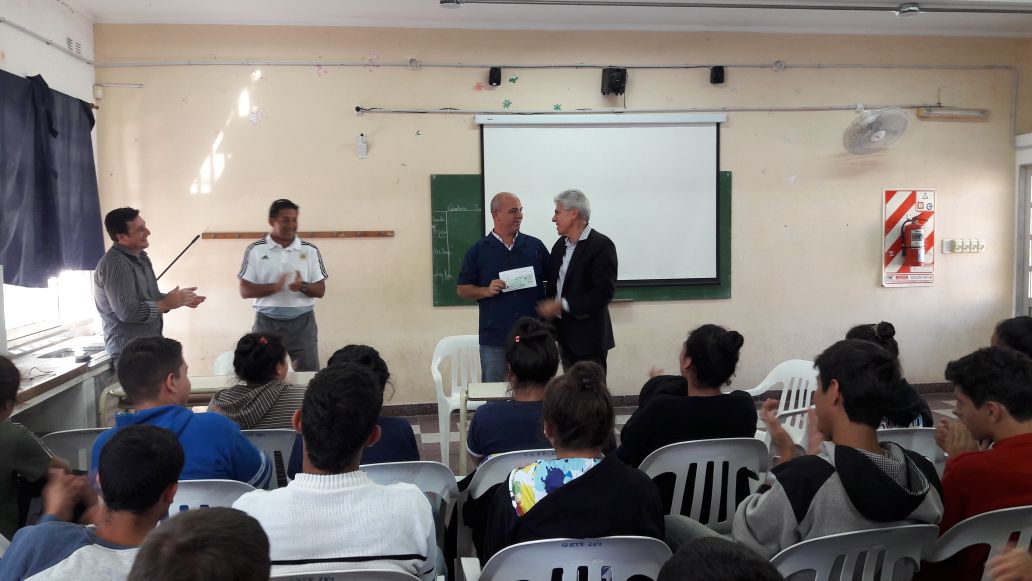 En el primer establecimiento fue recibido por directivos, profesor y alumnos, e hizo entrega de un aporte de 20 mil pesos para un proyecto institucional.