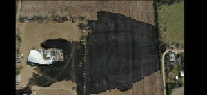 Un predio ubicado al oeste de la intersección de la ruta provincial n° 1 y el acceso al cementerio fue epicentro de un incendio de pastos, que habría comenzado en el sector norte del predio, y allí se encuentra una techería.
