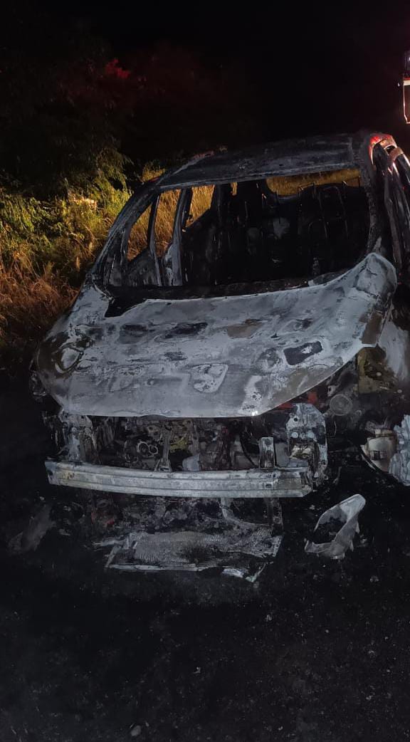 Por la noche, la unidad recibió una llamada alertando sobre un incendio vehicular en la Ruta Provincial 1, a la altura de Colonia San José. Al llegar al lugar, los bomberos encontraron un automóvil sedán de color blanco completamente consumido por las llamas. Dada la magnitud del siniestro, no fue posible determinar con precisión su origen. Afortunadamente, no se reportaron daños a los ocupantes, aunque el vehículo sufrió pérdida total.