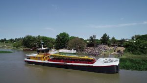 El senador José Baucero participó en la entrega por parte del Astillero Quintana de un barco realizado por esta empresa, que tiene una característica única que es su funcionamiento es totalmente eléctrico, para ser utilizado por la companía Nobile que hace extracción de arena del lecho del río. Su nombre es «Perla del Norte».