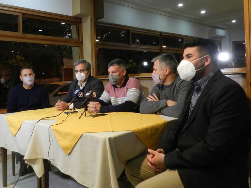 Los precandidatos del Frente de Todos por Santa Fe, Leandro Busatto (precandidato suplente a Senador Nacional) y Oscar Cachi Martínez, Eduardo Baucero y Adrián Scozzina (precandidatos a diputado nacional), ofrecieron una conferencia de prensa.