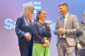 La presidente comunal de Cacique Ariacaiquín, Carolina Gómez, se unió ayer por la tarde en la ciudad de Santa Fe al gobernador Maximiliano Pullaro y la ministra de Igualdad y Desarrollo Humano, María Victoria Tejeda, para firmar convenios en el marco del programa «Servicios Locales de Promoción y Protección de Derechos».