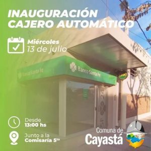 Cayastá. Inaugura cajero automático