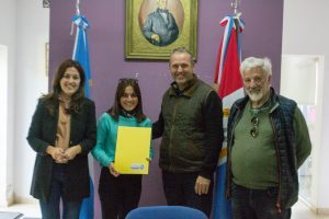 El acto de entrega de documentos estuvo encabezado por el Presidente Comunal Edgardo Berli, acompañado por la Vicepresidenta Verónica Devia, el Tesorero Carlos Hernández y la asesora legal Victoria Nasimbera.