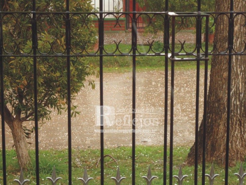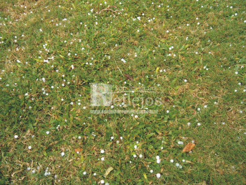 El fenómeno climático se registró antes del mediodía. Primero comenzó a llover intensamente y seguidamente cayeron piedras pequeñas, que cubrieron buena parte de calles, veredas y patios.
