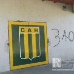 Esta mañana la pared de la ochava de la sede club Huracán, ubicada en la esquina de Núñez Burges y 9 de Julio, apareció con una escritura realizada por inadaptados en aerosol señalando 3 a 0. Los dirigentes adelantaron que realizaran la correspondiente denuncia ante la Policía.
