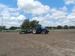 Destacó la colaboración en esta oportunidad de la empresa Trimacer, que aportó la moderna maquinaria GPS, que utiliza para el nivelado de terreno.