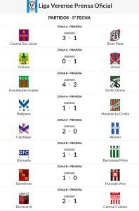 El equipo costero logró una importante victoria en la quinta fecha del torneo oficial de la Liga Verense de fútbol, al superar a River Plate de San Martín Norte por 3 a 1 en primera división. En reserva, ambos equipos igualaron en dos goles.
