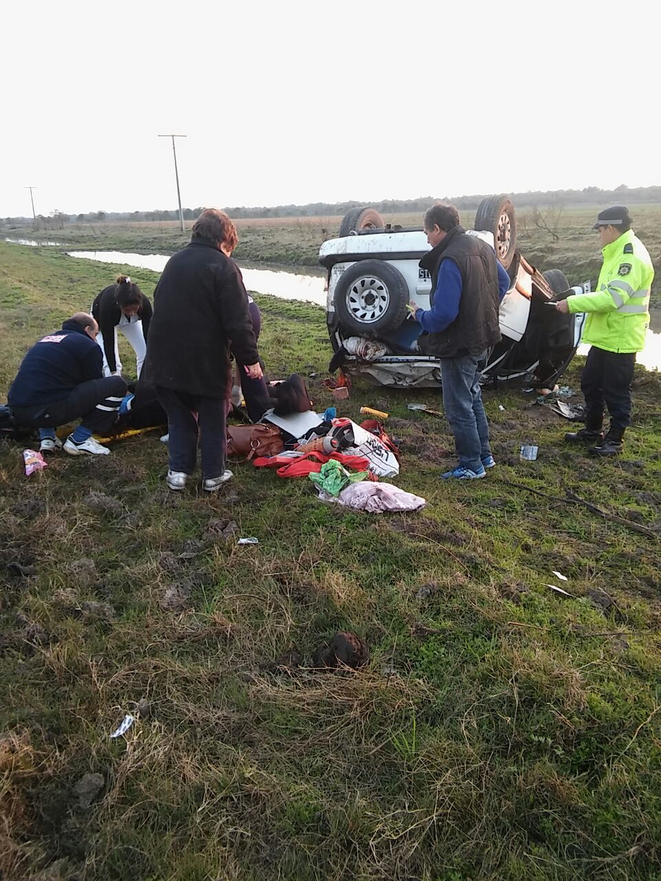 Una hora más tarde, en jurisdicción de Colonia California una camioneta, conducida por un hombre de 46 años, el cual era acompañado por dos mujeres mayores de edad de 40 y 65 años respectivamente y una menor de 13, todos domiciliados en Buenos Aires, por causas que se tratan de establecer, volcó. Todos resultaron con lesiones leves y fueron trasladados al hospital Rawson de San Javier.