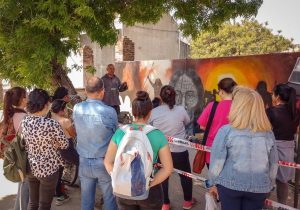 Además el artista Douglas Pereyra realizó una charla sobre la interpretación y detalles del mural de la Última Rebelión Mocoví a los alumnos que participan del curso, ya que luego les servirá como guía para contar a los turistas parte de nuestra importante historia.