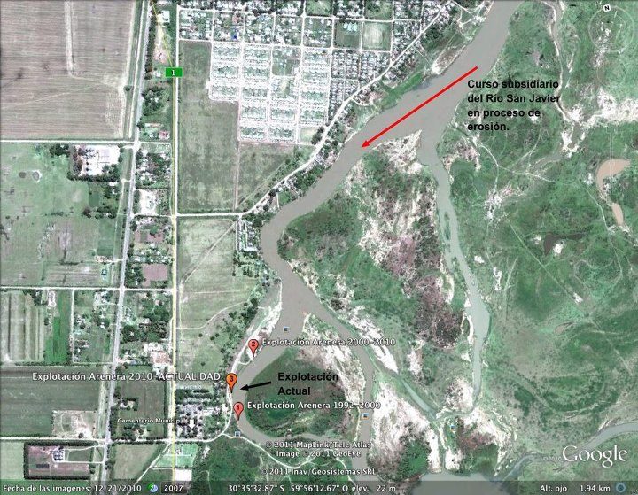 Está bien que la gente trabaje pero la explotación arenera en ese lugar y en toda la ribera del río San Javier está perjudicando al medio ambiente y a los vecinos de esa zona costera.Cada vez hay menos tierra las barrancas son mas profundas. ¿Es justo que por beneficio de uno pocos pierdan sus casa estos vecinos? Además hay muchos lugares cerca del río en donde no hay viviendas cercas… Me pregunto San Javier es una localidad turística y cada día se pierde hermosos paisajes por unos pesos … por unos pocos que lucran con recursos naturales que son de todos.. haciéndose dueños de caminos,terrenos, incluso del propio río…Es necesario un debate, un proyecto sustentable..