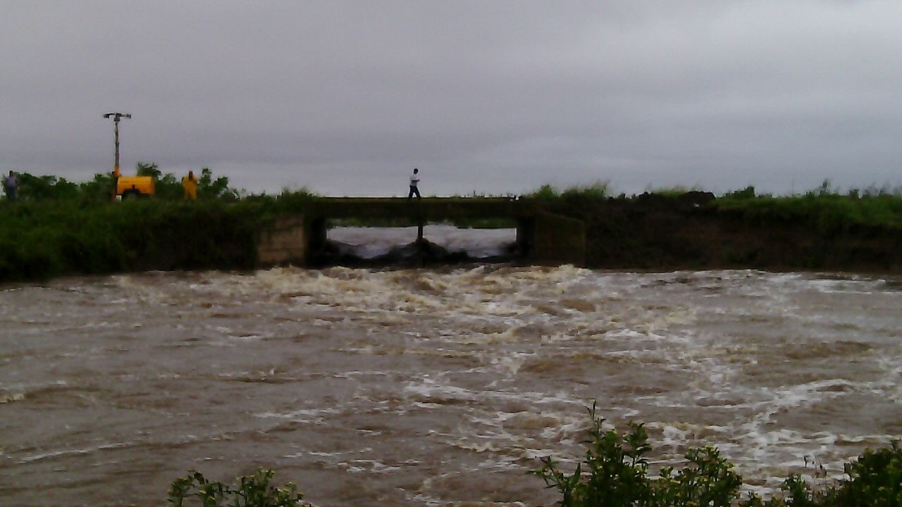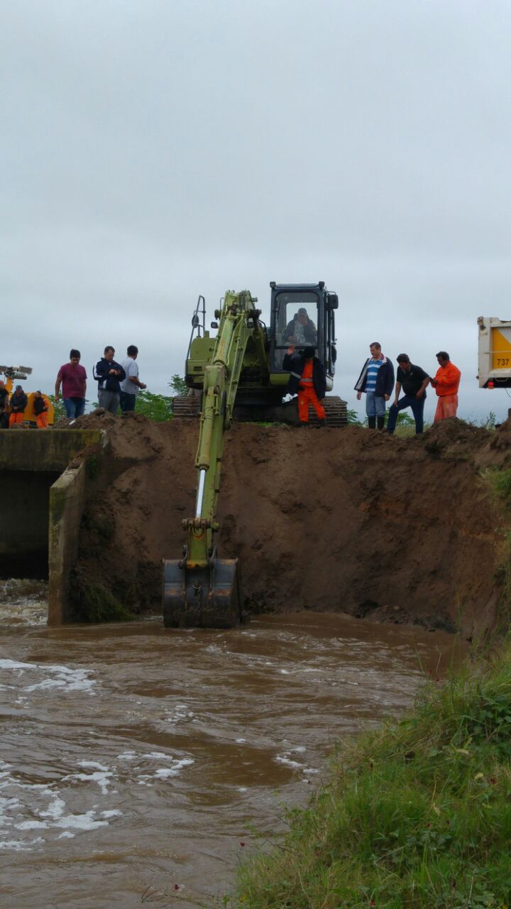 Personal y maquinaria de la Dirección Provincial de Vialidad y la Municipalidad de San Javier Intensifican las tareas para evitar que el agua provenientes de los campos erosione una alcantarilla transversal a la ruta 1, a 45 Km. al norte de San Javier. Por el momento el tránsito vehicular fue interrumpido.