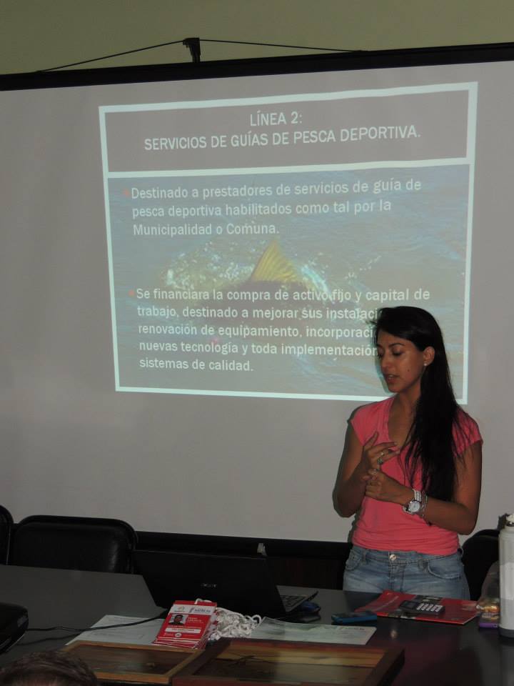 En la tanto, Verónica Galarza, Secretaria Administrativa de la Asociación para el Desarrollo Regional de la Costa presentó la línea de créditos específica para Guías de Pesca Deportiva.