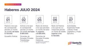 Los empleados de la Provincia percibirán sus sueldos desde el jueves 1 de agosto. El Ministerio de Economía de la Provincia dio a conocer el cronograma de pagos del mes de julio para los trabajadores estatales.